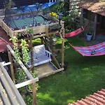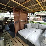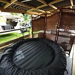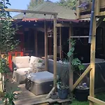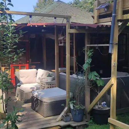 0-bedroom "Tempat Senang" Chalet On The Beautiful Veluwe With Airco Sauna Bbq Jacuzzi Beamer And Dog is located within 10 minutes' drive of Solsche Gat National Forest and provides cycling for active guests. Featuring a hot tub, a sauna, and a wellness facility, the lodge is around 10 minutes' drive from Edda Huzid G&CC.